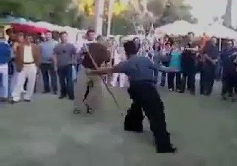 گویا تعدادی از ایرانیان ساکن ایالت کالیفرنیا به مناسبت جشن مهرگان گرد هم می آیند و آداب و رسوم کهن ایرانی را در این مراسم به نمایش می گذارند، که دستمال بازی و چوبازی مردان و زنان بختیاری نیز قسمتی از مراسم جشن این دوستان بوده است.